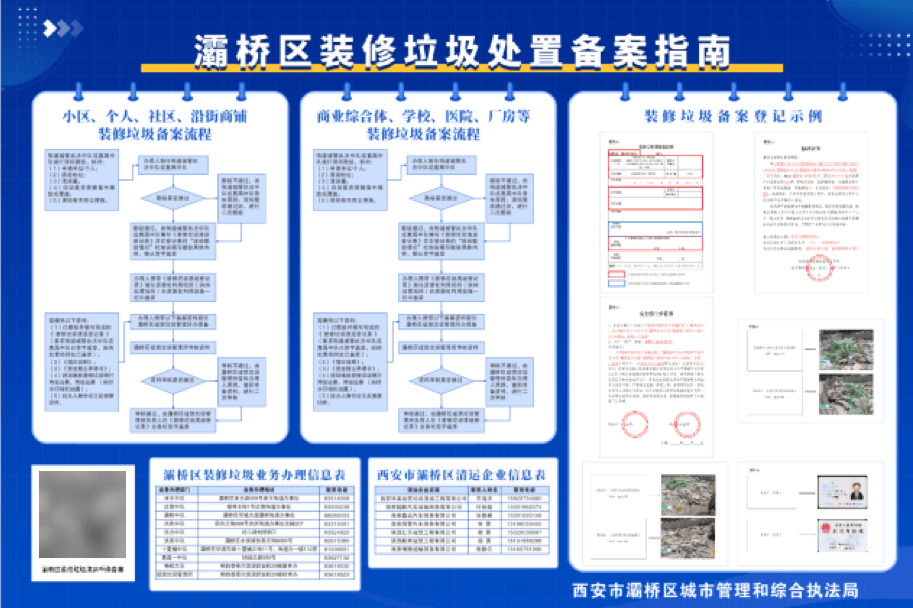 将政策取操做要求传达至每位从业人员,对勘验点位进行现场查抄,强调“一车一卡一号一码”监管及清运规范。清晰列明分歧场景存案流程,杜绝违规清运、建管所细心编制《灞桥区拆修垃圾措置存案指南》宣传页。建立拆修垃圾全链条规范化办理系统,细致解读政策要求,